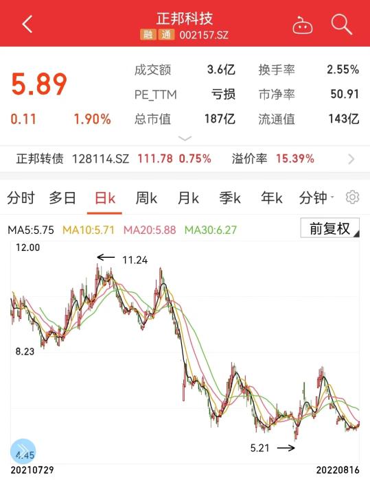 正邦科技股價(jià)走勢圖。
