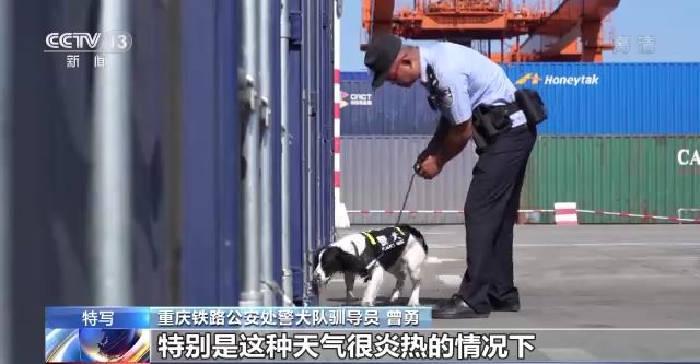重慶鐵路公安處警犬隊(duì)馴導(dǎo)員 陳城:咱們警犬它散熱的方式就是通過(guò)舌頭,但是它工作的時(shí)候又要閉著嘴,用鼻子來(lái)呼吸、工作。天氣又太熱,它自身也非常難受,其實(shí)它內(nèi)心是非常煎熬的,但是咱們的警犬都非常棒,執(zhí)行命令也非常強(qiáng)。