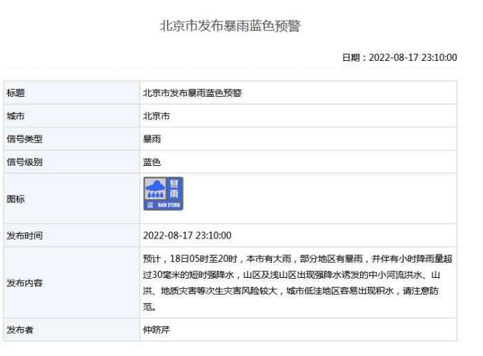 北京市發(fā)布暴雨藍(lán)色預(yù)警