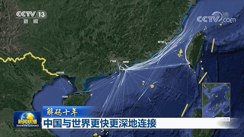 這十年間,中國沿海11個(gè)國際樞紐港口的航線量增長了60%。海運(yùn)服務(wù)網(wǎng)絡(luò)聯(lián)通了100多個(gè)國家和地區(qū)的主要港口,成為全球海運(yùn)連接度最高的國家。