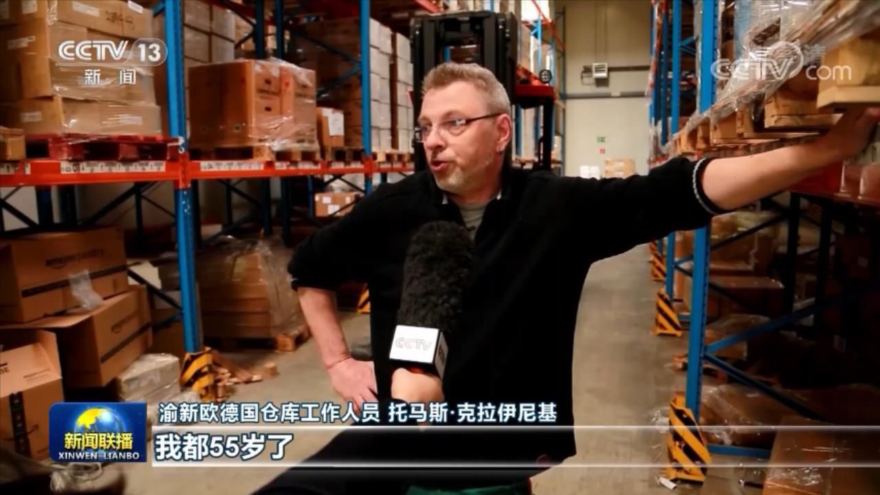 渝新歐德國倉庫工作人員 托馬斯·克拉伊尼基:我從2019年9月開始在這里工作,現(xiàn)在明顯感覺活變多了。從小的輕工業(yè)產(chǎn)品到大的機(jī)械,應(yīng)有盡有。我都55歲了,竟然還能獲得一份固定的工作合同,這在德國可不常見。