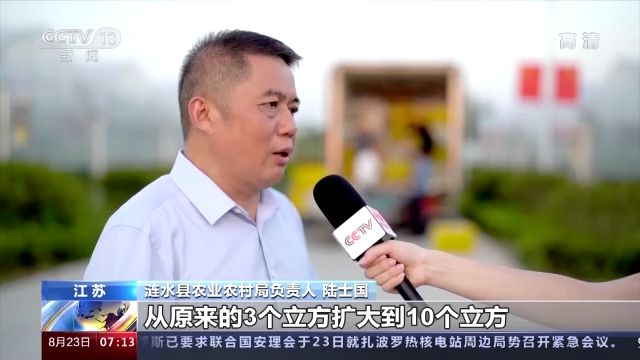 漣水縣農(nóng)業(yè)農(nóng)村局負(fù)責(zé)人 陸士國:針對這段時間的高溫天氣,我們又對小型移動式冷庫進(jìn)行了升級改造,從以前3個立方擴大到10個立方,保電時間從半個小時擴大到現(xiàn)在的兩個半小時。