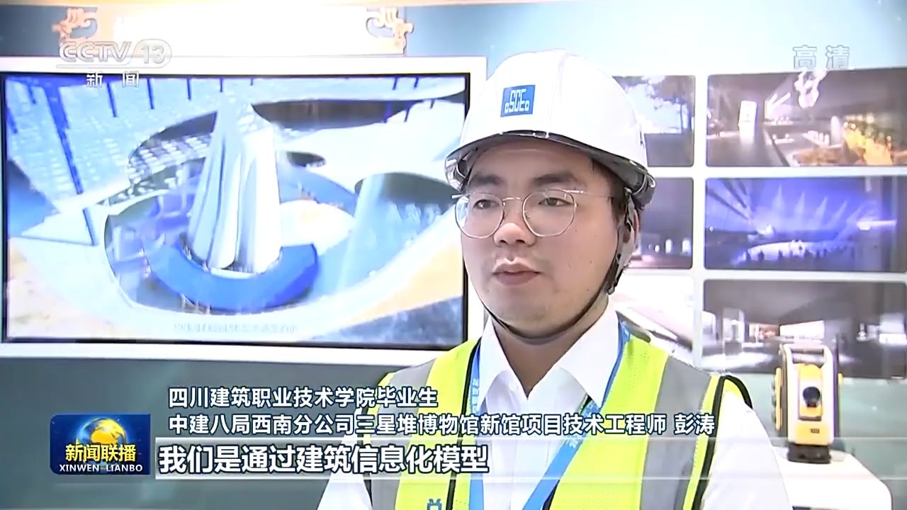 四川建筑職業(yè)技術(shù)學(xué)院畢業(yè)生 中建八局西南分公司三星堆博物館新館項目技術(shù)工程師 彭濤:我們是通過建筑信息化模型,提前搭建虛擬博物館,把各種風(fēng)險提前排除,智能建造讓我們加速奔向未來社會。今天的職業(yè)教育是很有預(yù)見性的,讓我提前獲得了建筑信息模型技術(shù)及大數(shù)據(jù)等多種本領(lǐng)。