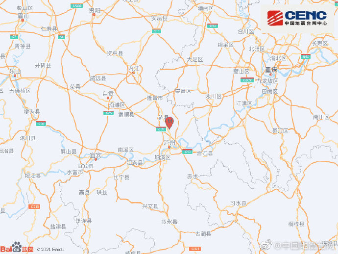 四川瀘州市龍馬潭區(qū)發(fā)生3.9級(jí)地震 震源深度10千米