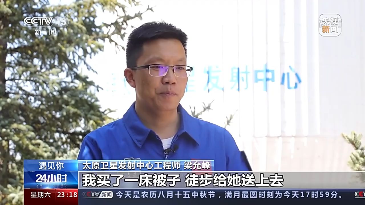 太原衛(wèi)星發(fā)射中心工程師 梁允峰:天氣變涼了,我從山下到山上一個山頭,大概有四五公里,我買了一床被子徒步給她送上去。