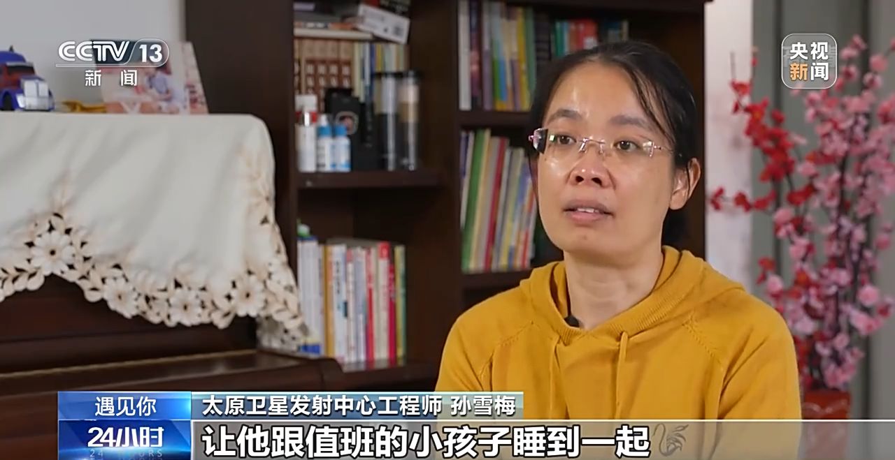太原衛(wèi)星發(fā)射中心工程師 孫雪梅:尤其是忙起來的時候,真想找個人替我一把,但是又沒有,然后就覺得要是他在,就能幫你一下,咬牙克服,很難。比如說,孩子很小的時候,他不在,我晚上還要去加班,我就抱著他,我們樓里面有個值班室,讓他跟值班的小孩子睡到一起,我凌晨加班結(jié)束了,再把他抱回來。