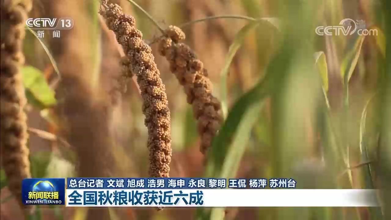 目前,全國秋糧已收獲7.37億畝,完成56.4%,進(jìn)度同比快3個(gè)百分點(diǎn)。(央視網(wǎng))