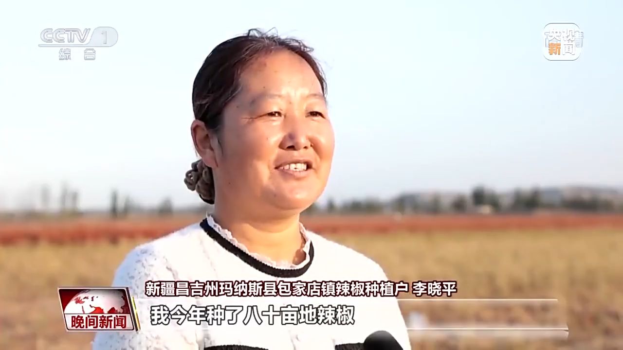 新疆昌吉州瑪納斯縣包家店鎮(zhèn)辣椒種植戶 李曉平:我今年種了八十畝地辣椒,現(xiàn)在正在機械采收,以前種這么多地,要最少得十天才能采收,現(xiàn)在機械采收省事、省力。