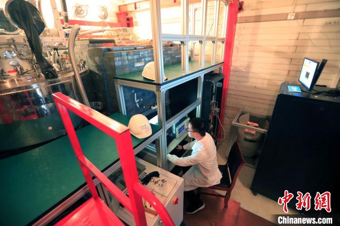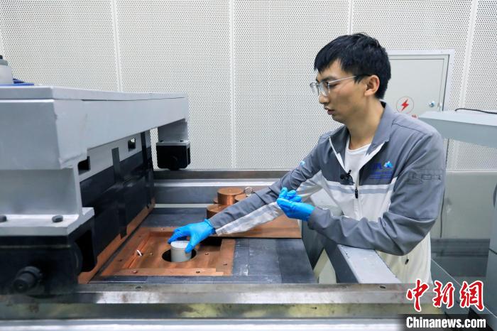 中國錦屏地下實(shí)驗(yàn)室內(nèi),科研助理景明坤正在對樣本進(jìn)行輻射檢測?!⊥趵?攝
