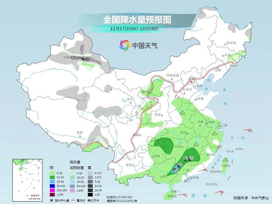 明天將是降雨最強(qiáng)的一天,新疆北部、西藏北部和東部、青海南部等地部分地區(qū)有小到中雪,其中,新疆北疆北部和伊犁河谷局地有大雪。江淮西部、江南中東部和西南部、華南西部等地部分地區(qū)有中到大雨,其中,廣西東北部等地局地有暴雨。
