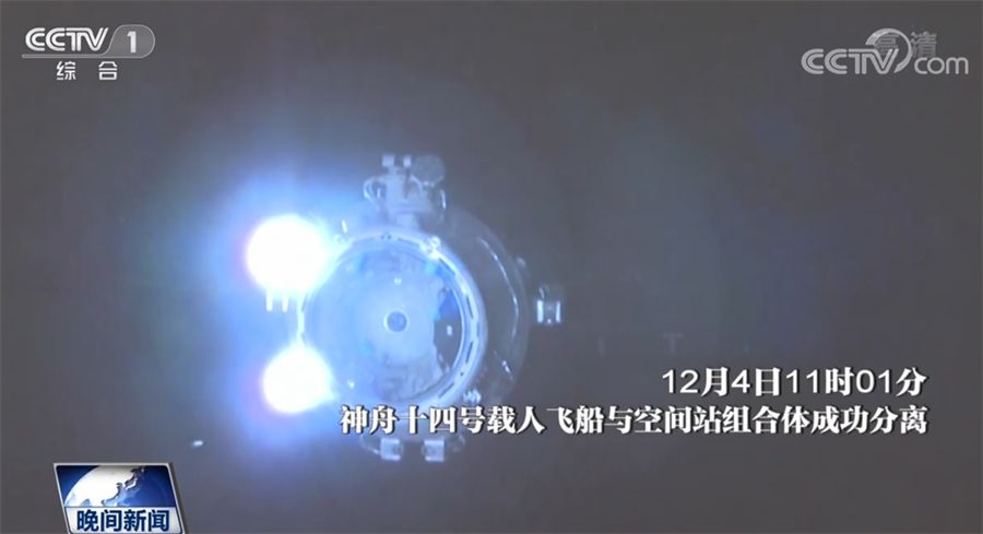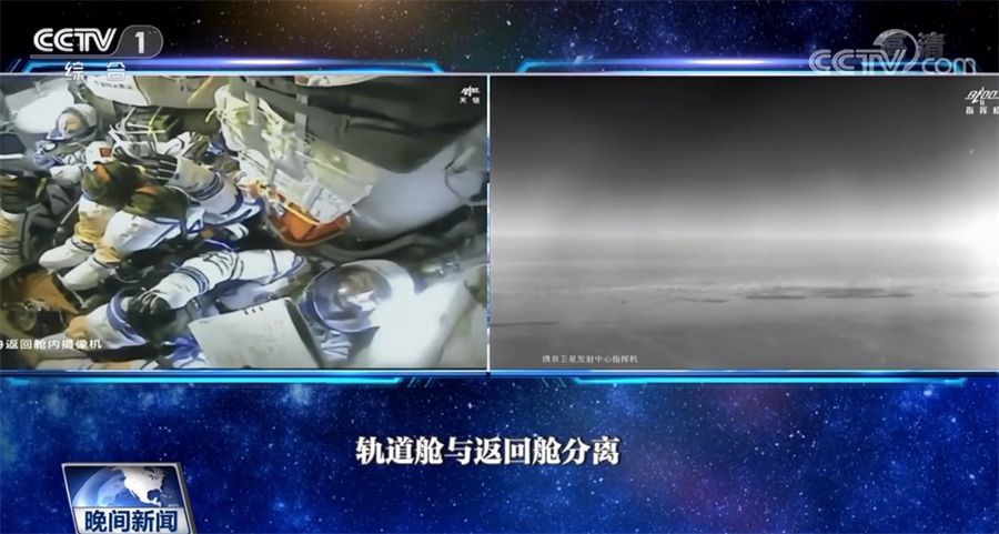 19時20分,北京航天飛行控制中心通過地面測控站發(fā)出返回指令,神舟十四號載人飛船軌道艙與返回艙成功分離。此后,飛船返回制動發(fā)動機點火,返回艙與推進艙分離。