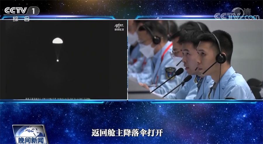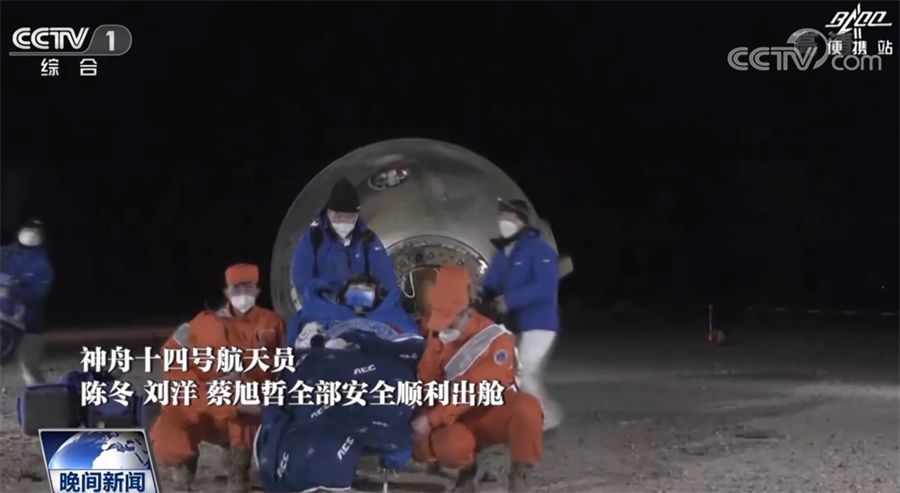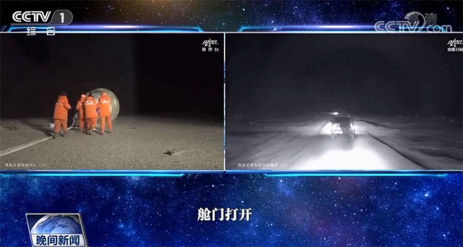 返回艙成功著陸后,擔負搜救回收任務(wù)的搜救分隊及時發(fā)現(xiàn)目標并抵達著陸現(xiàn)場。返回艙艙門打開后,醫(yī)監(jiān)醫(yī)保人員確認航天員身體健康。