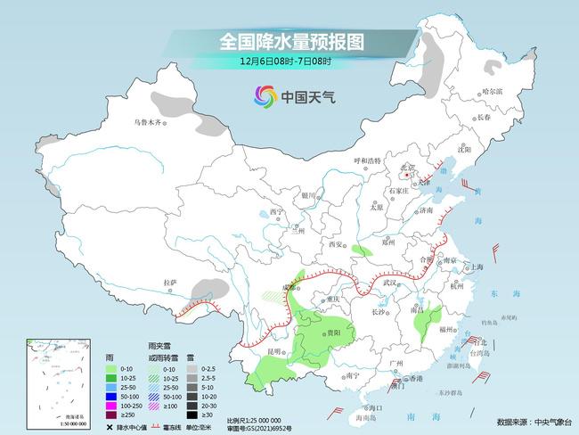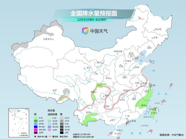 今天起,南方降水范圍將明顯縮減,全國大部進入雨雪稀少的階段。中央氣象臺預計,今天,新疆北疆北部和南疆西部山區(qū)、西藏東部等地的部分地區(qū)有小雪或雨夾雪。浙江東部、福建中北部、四川盆地西部、云南中南部、臺灣島等地部分地區(qū)有小雨。
