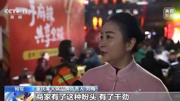 重慶市商務(wù)委員會(huì)服務(wù)業(yè)發(fā)展處副處長(zhǎng) 張毓益:這一周來看,還是有一點(diǎn)點(diǎn)超出我們的預(yù)期,這也和我們重慶人喜歡熱鬧,喜歡大家出來聚會(huì)這種性格有關(guān)系。這一點(diǎn)也是讓我們看到了迅速走出前段時(shí)間的經(jīng)營(yíng)困境非常好的一個(gè)利好信號(hào)。
