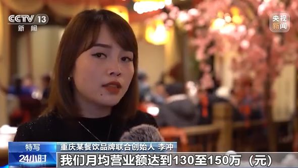 重慶某餐飲品牌聯(lián)合創(chuàng)始人 李沖:比如說我們這個(gè)店,我們?cè)谝咔榍?,最好的時(shí)候我們?cè)戮鶢I(yíng)業(yè)額達(dá)到130萬元—150萬元,目前的話可能恢復(fù)到70%左右。
