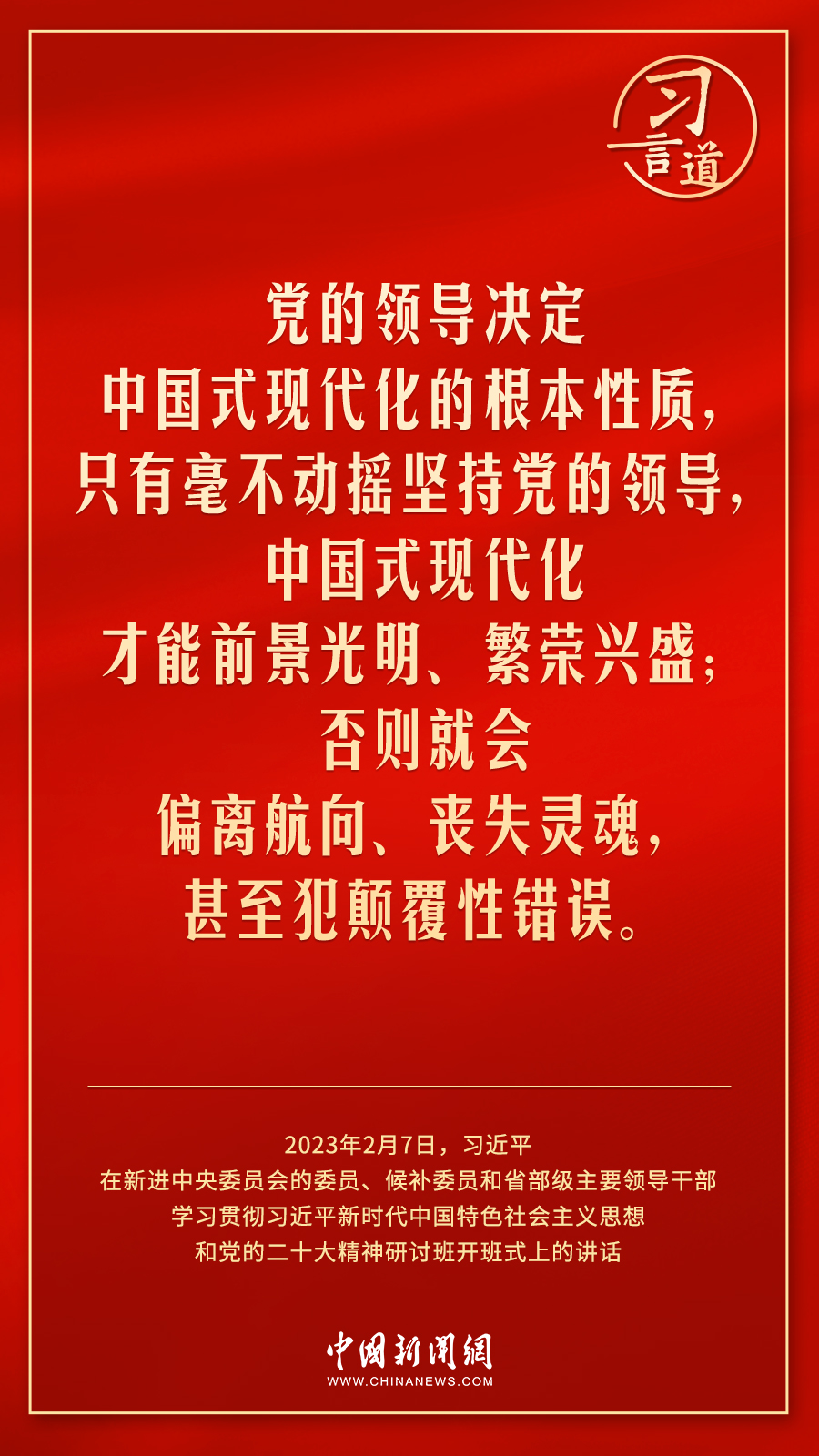 新進(jìn)中央委員會(huì)的委員、候補(bǔ)委員和省部級(jí)主要領(lǐng)導(dǎo)干部學(xué)習(xí)貫徹習(xí)近平新時(shí)代中國特色社會(huì)主義思想和黨的二十大精神研討班2月7日上午在中央黨校(國家行政學(xué)院)開班。中共中央總書記、國家主席、中央軍委主席習(xí)近平在開班式上發(fā)表重要講話,他強(qiáng)調(diào)——