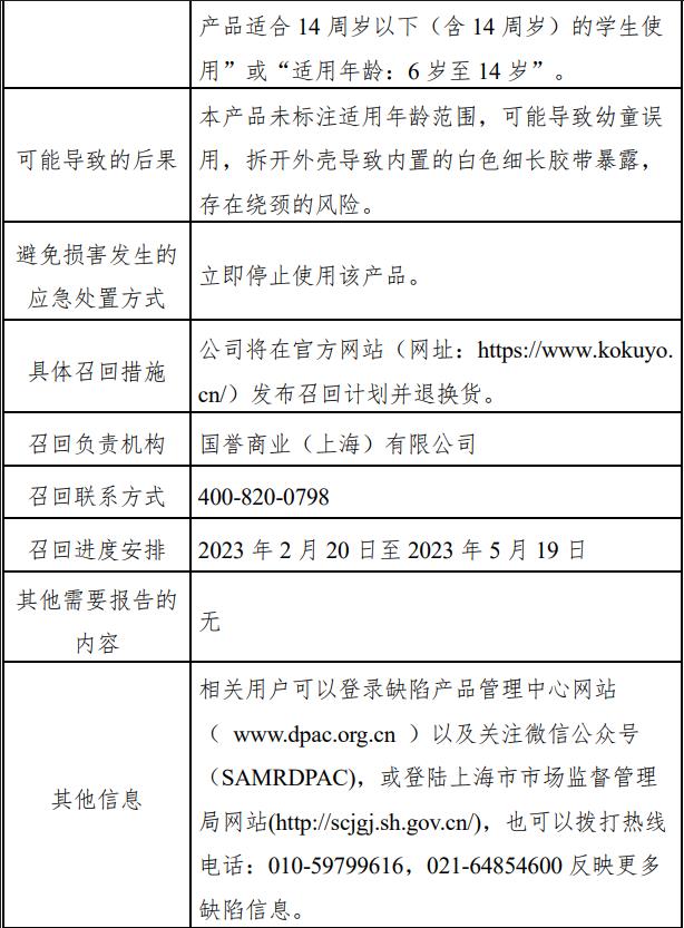 國譽商業(yè)(上海)有限公司將在官方網(wǎng)站(網(wǎng)址:https://www.kokuyo.cn/)發(fā)布召回計劃并退換貨。(中新財經(jīng))