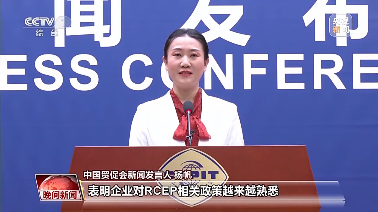 中國貿(mào)促會新聞發(fā)言人 楊帆:表明企業(yè)對RCEP相關(guān)政策越來越熟悉,政策紅利正在逐步釋放。