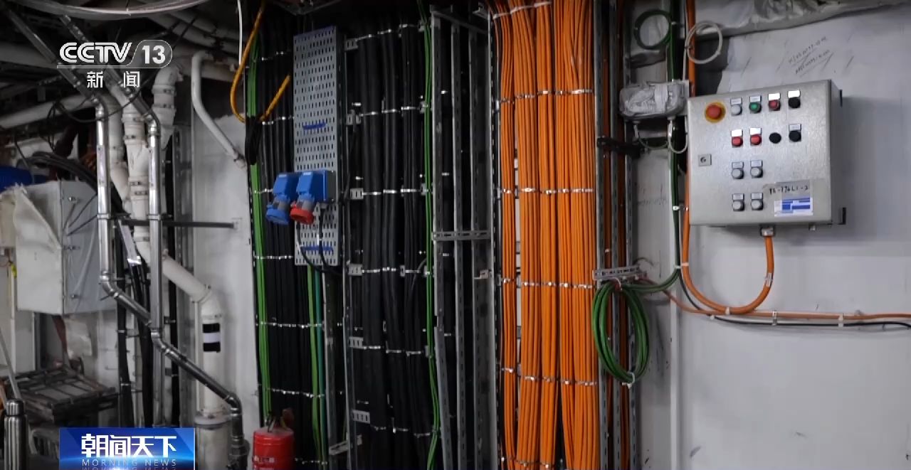 總臺央視記者 李寧:如何確保這樣一艘海上巨無霸的正常運行,靠的就是我身后的這些電纜,這些電纜就好比這艘船上的神經(jīng)和血管,它的總長度超過4300公里,比哈爾濱到三亞的距離還要遠。
