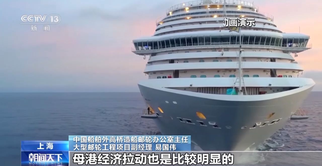 中國船舶外高橋造船郵輪辦公室主任 大型郵輪工程項目副經(jīng)理 易國偉:顧客在登船和下船以后,在當?shù)匾矔M行對應的消費和娛樂,所以對當?shù)馗劭诘哪父劢?jīng)濟拉動也是比較明顯的。中國的郵輪產(chǎn)業(yè)如果按照正常的發(fā)展速度,預估在2035年可以達到一年5000億元的產(chǎn)值。