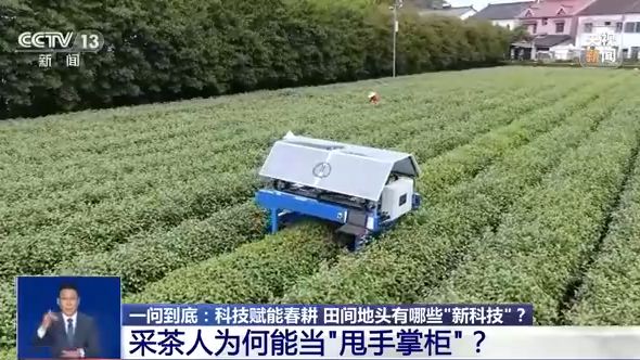 農(nóng)業(yè)科技的運(yùn)用打開了種田人的新空間,我們?cè)偃ゲ刹鑸@看看。眼下,正是春茶采摘旺季,各地的茶農(nóng)都在忙著采摘茶芽。不過您知道嗎?現(xiàn)在采茶人也能當(dāng)“甩手掌柜”了。為了幫助茶農(nóng)提產(chǎn)增收,當(dāng)?shù)芈?lián)合高校機(jī)器人團(tuán)隊(duì),經(jīng)過不斷嘗試、改進(jìn),研發(fā)出了自主識(shí)別茶樹芽葉的智能采茶機(jī)器人。跟隨記者的鏡頭,一起去浙江杭州的茶園里看看。