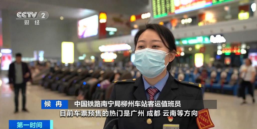 中國鐵路南寧局柳州車站客運值班員 候冉:目前車票預(yù)售的熱門是廣州、成都、云南等方向。預(yù)計整個五一假期,柳州站增加南寧、賀州等方向6趟車。
