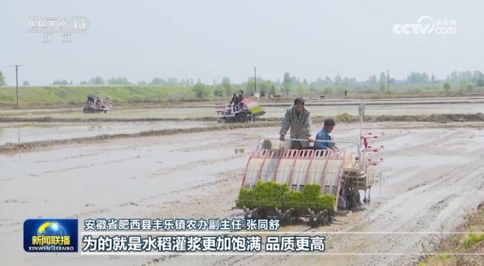 在安徽省肥西縣新華村的“小田變大田”示范區(qū),由于路網(wǎng)暢通、溝渠配套,良好的作業(yè)條件提高了農(nóng)機(jī)手們插秧的作業(yè)效率,加快了整體夏種進(jìn)度。(央視網(wǎng))