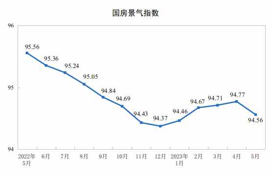 5月份,房地產(chǎn)開發(fā)景氣指數(shù)(簡(jiǎn)稱“國(guó)房景氣指數(shù)”)為94.56。