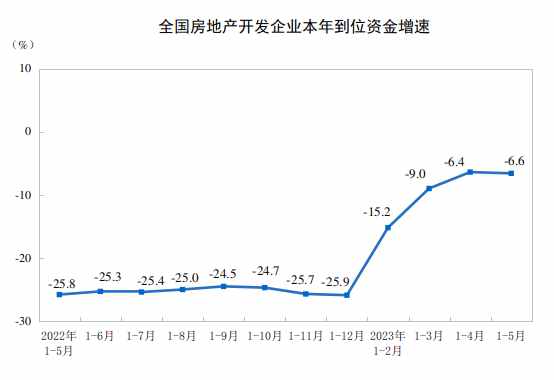 1—5月份,房地產(chǎn)開發(fā)企業(yè)房屋施工面積779506萬平方米,同比下降6.2%。其中,住宅施工面積548475萬平方米,下降6.5%。房屋新開工面積39723萬平方米,下降22.6%。其中,住宅新開工面積29010萬平方米,下降22.7%。房屋竣工面積27826萬平方米,增長(zhǎng)19.6%。其中,住宅竣工面積20194萬平方米,增長(zhǎng)19.0%。