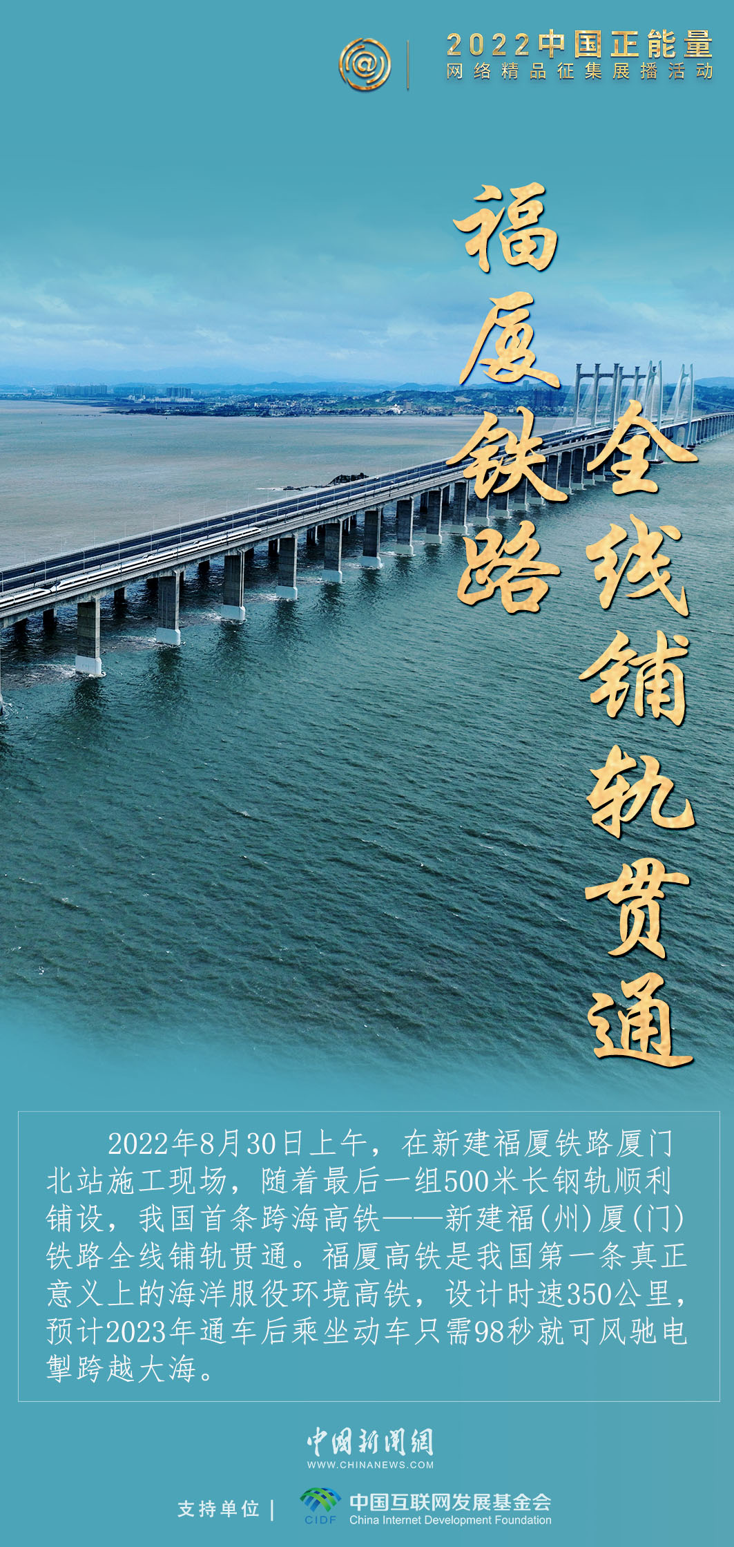 2022年是我國交通建設(shè)碩果累累的一年,我國首條跨海高鐵——新建福(州)廈(門)鐵路全線鋪軌貫通,新疆和若鐵路通車運(yùn)營,世界首條環(huán)沙漠鐵路線正式完成“最后一塊拼圖”,穿山越嶺、橫越大海,中國交通一路向前。