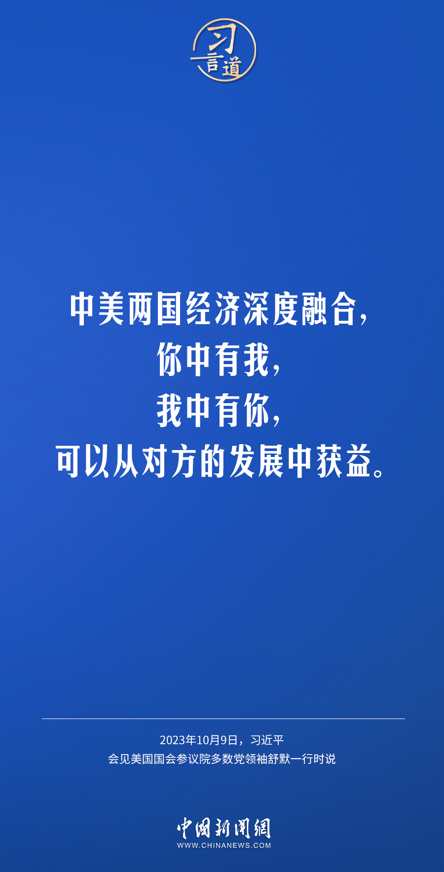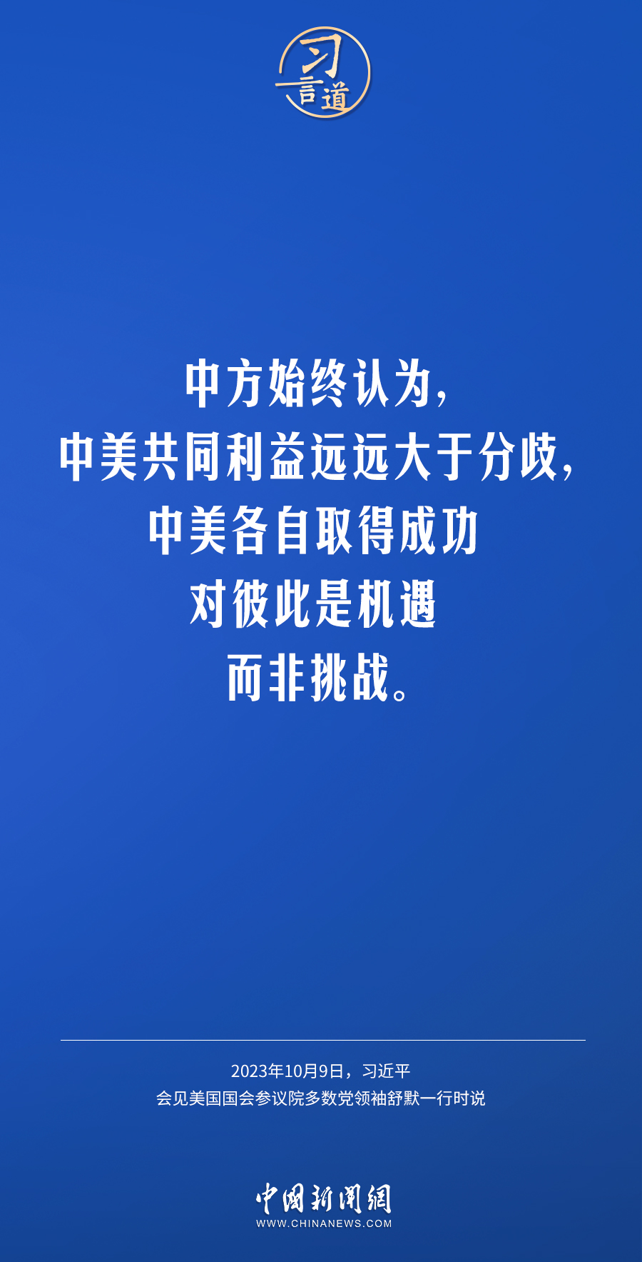 10月9日下午,國家主席習(xí)近平在人民大會堂會見美國國會參議院多數(shù)黨領(lǐng)袖舒默率領(lǐng)的美國國會參議院兩黨代表團(tuán)。習(xí)近平指出——