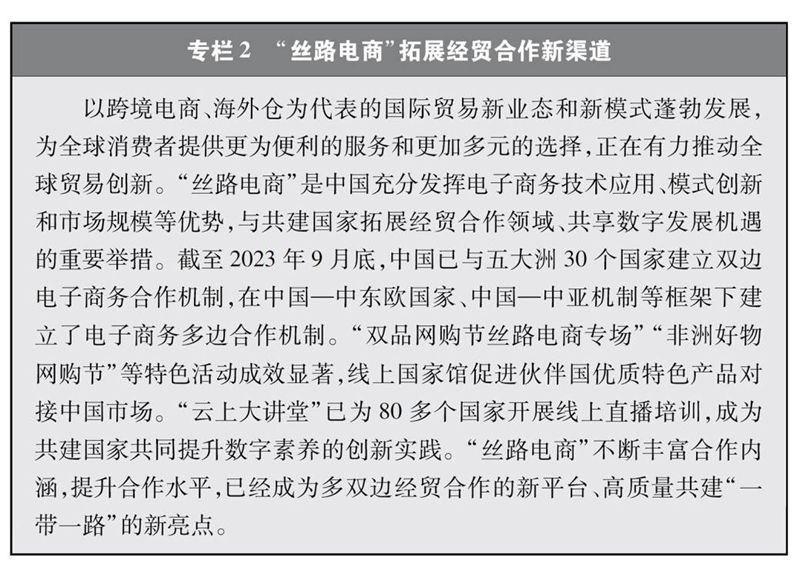 “數(shù)字絲綢之路”建設(shè)亮點紛呈。共建國家加強數(shù)字領(lǐng)域的規(guī)則標(biāo)準(zhǔn)聯(lián)通,推動區(qū)域性數(shù)字政策協(xié)調(diào),攜手打造開放、公平、公正、非歧視的數(shù)字發(fā)展環(huán)境。截至2022年底,中國已與17個國家簽署“數(shù)字絲綢之路”合作諒解備忘錄,與30個國家簽署電子商務(wù)合作諒解備忘錄,與18個國家和地區(qū)簽署《關(guān)于加強數(shù)字經(jīng)濟領(lǐng)域投資合作的諒解備忘錄》,提出并推動達(dá)成《全球數(shù)據(jù)安全倡議》《“一帶一路”數(shù)字經(jīng)濟國際合作倡議》《中國-東盟關(guān)于建立數(shù)字經(jīng)濟合作伙伴關(guān)系的倡議》《中阿數(shù)據(jù)安全合作倡議》《“中國+中亞五國”數(shù)據(jù)安全合作倡議》《金磚國家數(shù)字經(jīng)濟伙伴關(guān)系框架》等合作倡議,牽頭制定《跨境電商標(biāo)準(zhǔn)框架》。積極推進數(shù)字基礎(chǔ)設(shè)施互聯(lián)互通,加快建設(shè)數(shù)字交通走廊,多條國際海底光纜建設(shè)取得積極進展,構(gòu)建起130套跨境陸纜系統(tǒng),廣泛建設(shè)5G基站、數(shù)據(jù)中心、云計算中心、智慧城市等,對傳統(tǒng)基礎(chǔ)設(shè)施如港口、鐵路、道路、能源、水利等進行數(shù)字化升級改造,“中國-東盟信息港”、“數(shù)字化中歐班列”、中阿網(wǎng)上絲綢之路等重點項目全面推進,“數(shù)字絲路地球大數(shù)據(jù)平臺”實現(xiàn)多語言數(shù)據(jù)共享??臻g信息走廊建設(shè)成效顯著,中國已建成連接南亞、非洲、歐洲和美洲的衛(wèi)星電信港,中巴(西)地球資源系列遙感衛(wèi)星數(shù)據(jù)廣泛應(yīng)用于多個國家和領(lǐng)域,北斗三號全球衛(wèi)星導(dǎo)航系統(tǒng)為中歐班列、船舶海運等領(lǐng)域提供全面服務(wù);中國與多個共建國家和地區(qū)共同研制和發(fā)射通信或遙感衛(wèi)星、建設(shè)衛(wèi)星地面接收站等空間基礎(chǔ)設(shè)施,依托聯(lián)合國空間科技教育亞太區(qū)域中心(中國)為共建國家培養(yǎng)大量航天人才,積極共建中海聯(lián)合月球和深空探測中心、中阿空間碎片聯(lián)合觀測中心、瀾湄對地觀測數(shù)據(jù)合作中心、中國東盟衛(wèi)星應(yīng)用信息中心、中非衛(wèi)星遙感應(yīng)用合作中心,利用高分衛(wèi)星16米數(shù)據(jù)共享服務(wù)平臺、“一帶一路”典型氣象災(zāi)害分析及預(yù)警平臺、自然資源衛(wèi)星遙感云服務(wù)平臺等服務(wù)于更多共建國家。