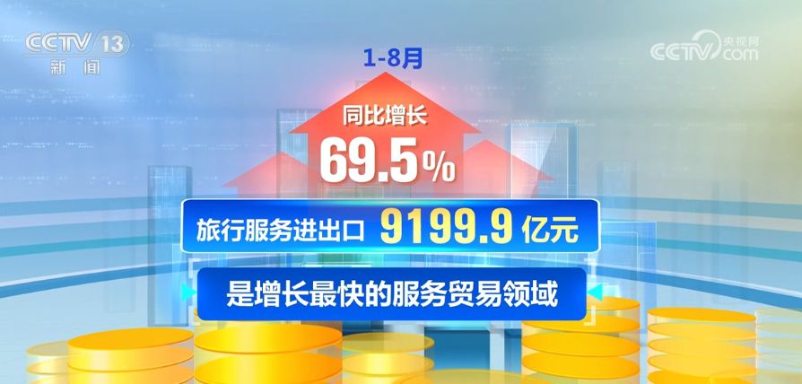 旅行服務持續(xù)恢復。1—8月,旅行服務進出口9199.9億元,同比增長69.5%,是增長最快的服務貿(mào)易領域。其中,出口增長54.9%,進口增長70.7%。