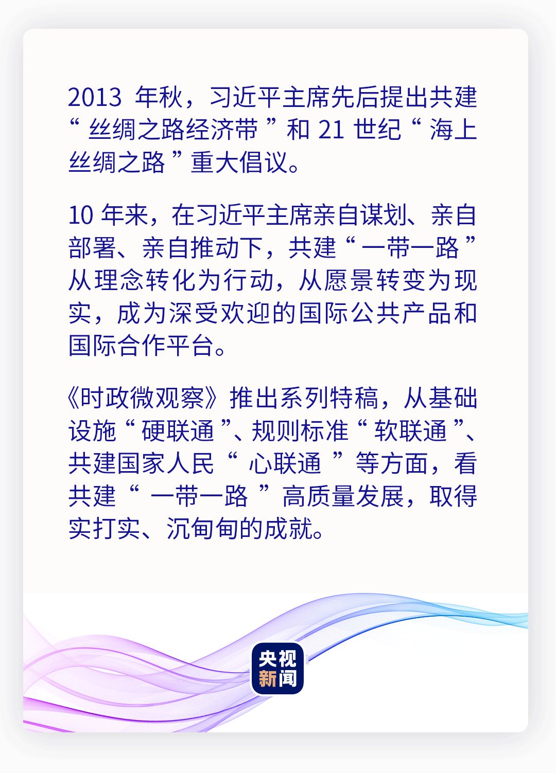 民相親在于心相通。民心相通,是最基礎、最堅實、最持久的互聯(lián)互通。10年來,一個個項目在共建“一帶一路”國家落地開花,拉近了各國人民的心。