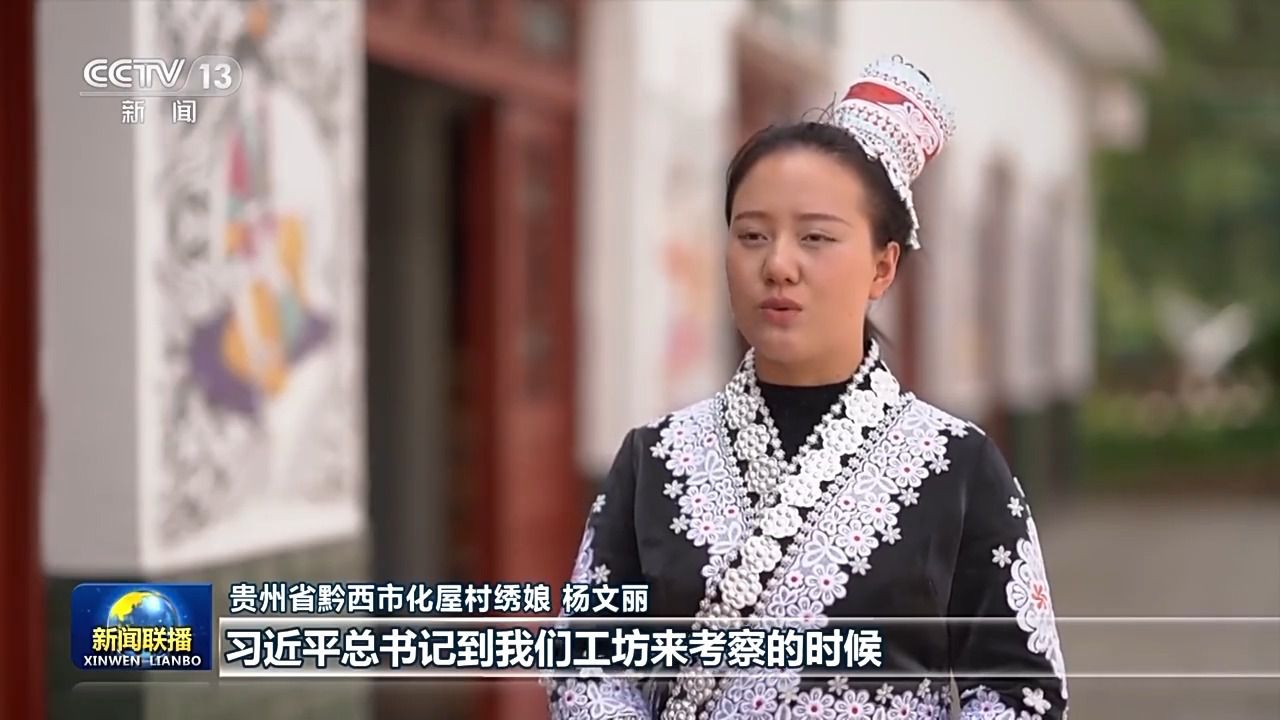 貴州省黔西市化屋村繡娘 楊文麗:習(xí)近平總書記到我們工坊來(lái)考察的時(shí)候,囑咐我們要把苗繡傳承好,發(fā)展好,推動(dòng)鄉(xiāng)村振興。這也為我們發(fā)展好苗繡產(chǎn)業(yè)打開了一個(gè)新思路。