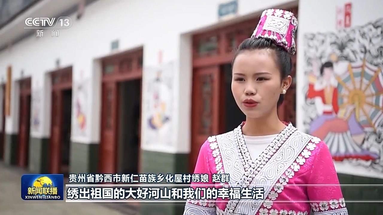 貴州省黔西市新仁苗族鄉(xiāng)化屋村繡娘 趙群:我也希望通過(guò)我們的一針一線,繡出祖國(guó)的大好河山和我們的幸福生活。