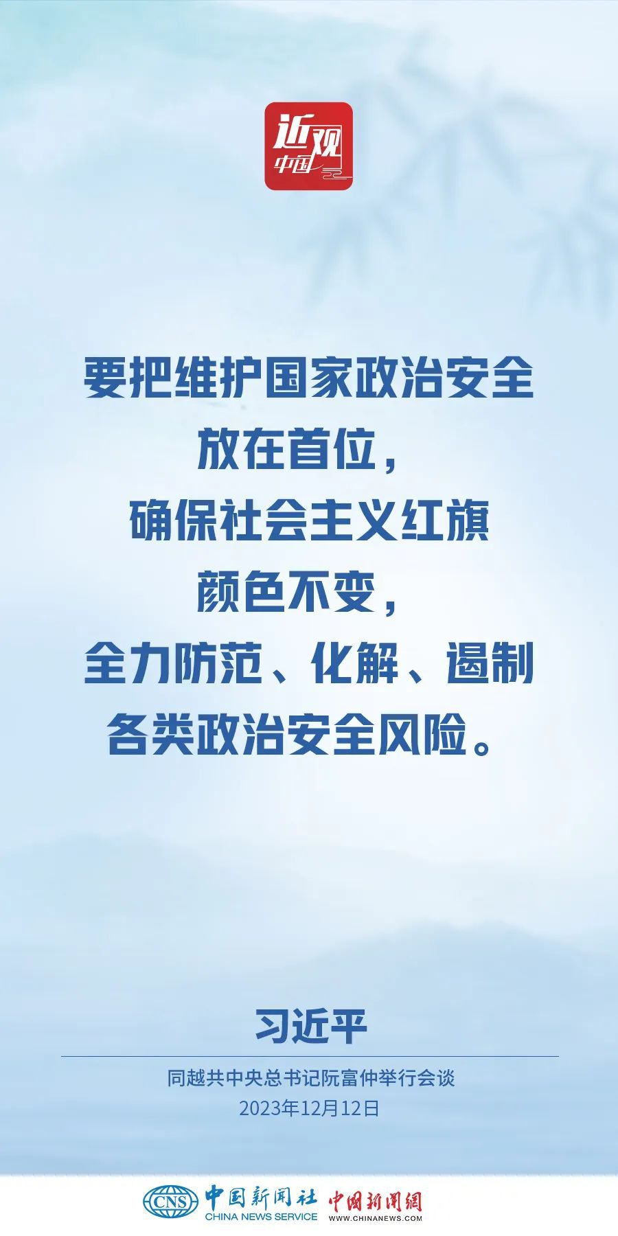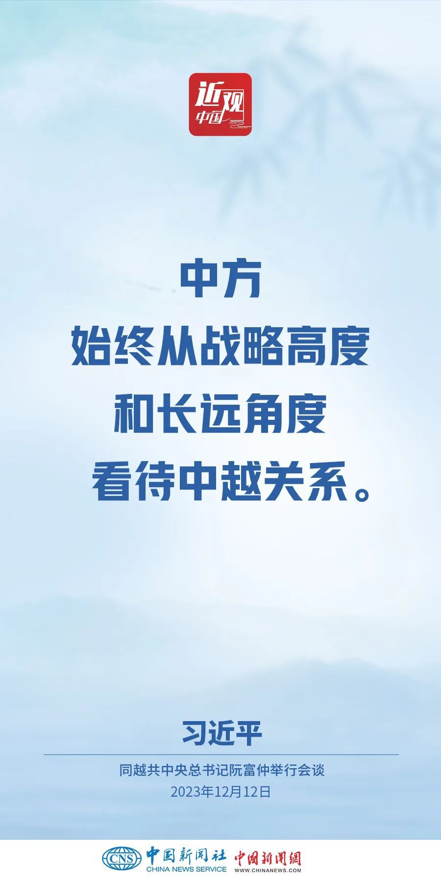 當(dāng)?shù)貢r(shí)間12月12日下午,剛剛抵達(dá)河內(nèi)的中共中央總書(shū)記、國(guó)家主席習(xí)近平在越共中央駐地同越共中央總書(shū)記阮富仲舉行會(huì)談。雙方宣布中越兩黨兩國(guó)關(guān)系新定位,在深化中越全面戰(zhàn)略合作伙伴關(guān)系基礎(chǔ)上,攜手構(gòu)建具有戰(zhàn)略意義的中越命運(yùn)共同體。習(xí)近平指出——