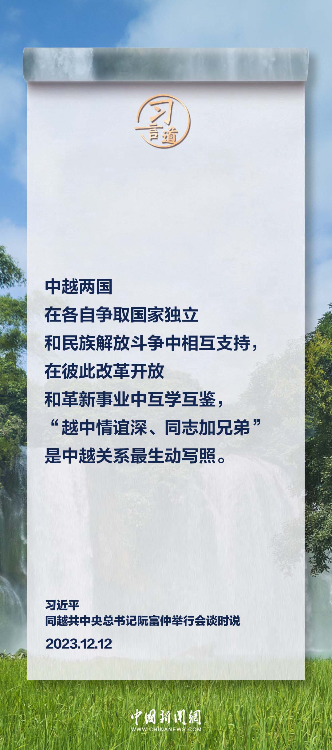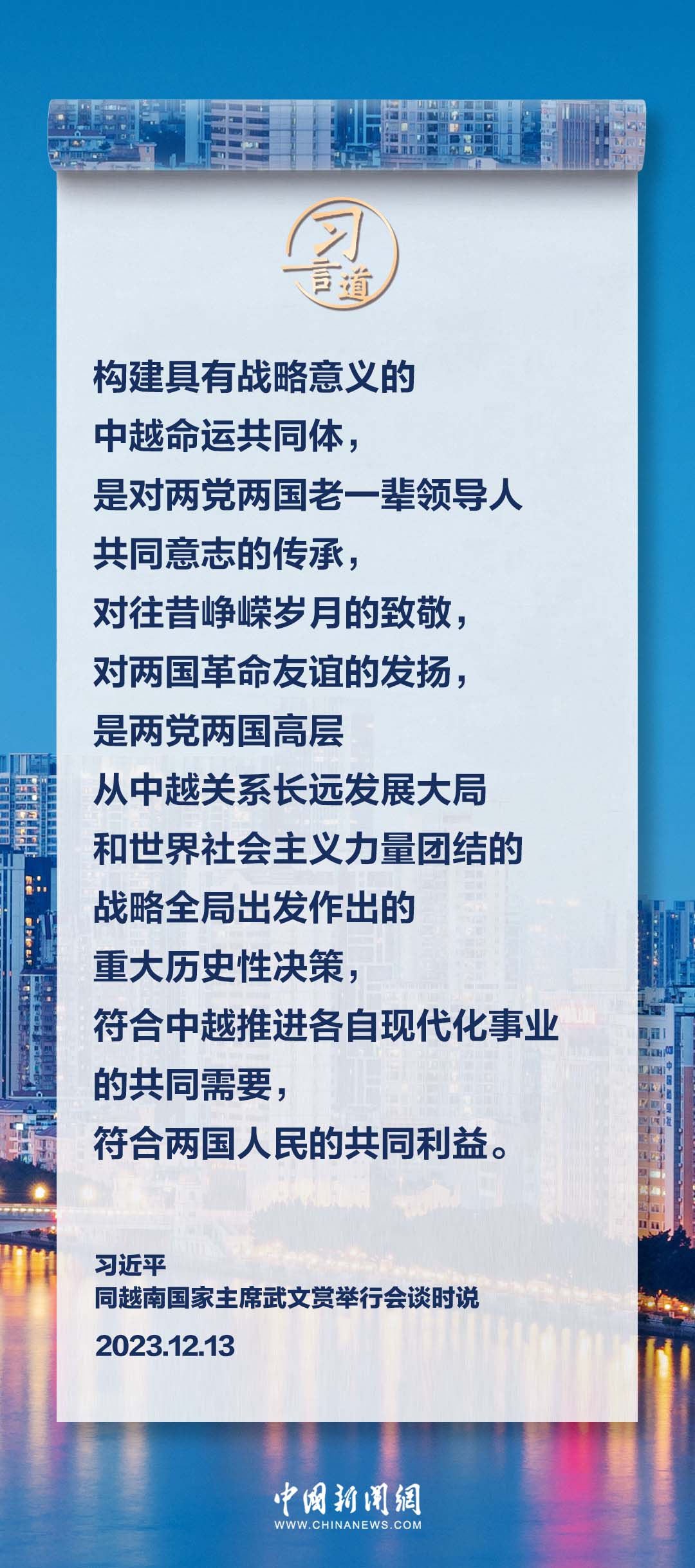 應(yīng)越南共產(chǎn)黨中央委員會總書記阮富仲、越南社會主義共和國主席武文賞邀請,中共中央總書記、國家主席習(xí)近平于12月12日至13日對越南進(jìn)行國事訪問。訪問期間,習(xí)近平指出——