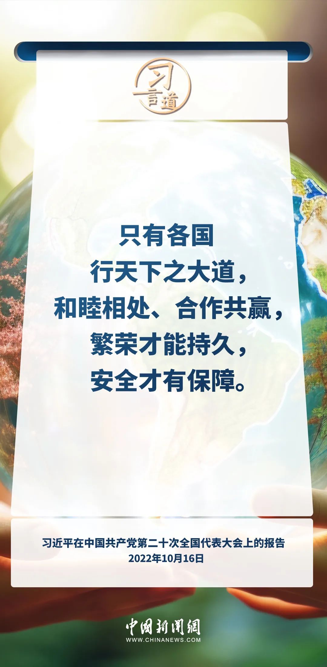 世界好,中國(guó)才會(huì)好;中國(guó)好,世界會(huì)更好。習(xí)近平主席在多個(gè)重要場(chǎng)合對(duì)人類命運(yùn)共同體理念進(jìn)行全面深刻論述,強(qiáng)調(diào)開放包容、合作共贏才是人間正道。