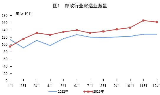 12月份,郵政行業(yè)寄遞業(yè)務(wù)量完成161.7億件,同比增長26.5%。其中,快遞業(yè)務(wù)量完成132.6億件,同比增長27.9%。