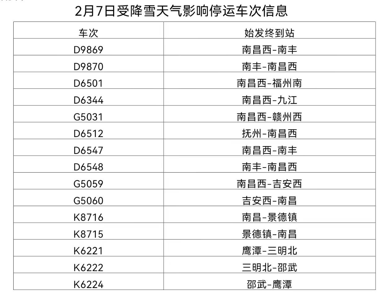 受雨雪冰凍影響 今日國(guó)鐵南昌路局部分旅客列車停運(yùn)