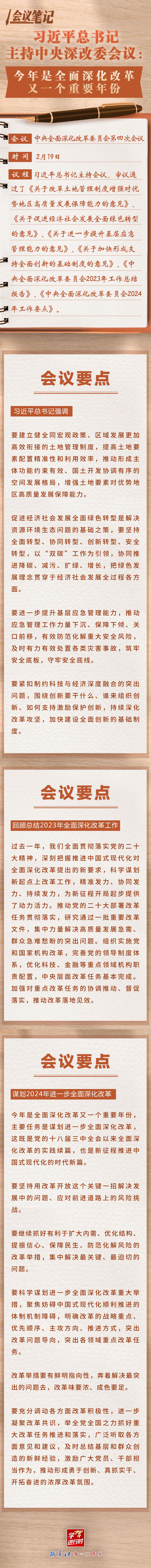 學(xué)習(xí)進(jìn)行時(shí)丨會(huì)議筆記:習(xí)近平總書記主持中央深改委會(huì)議:今年是全面深化改革又一個(gè)重要年份