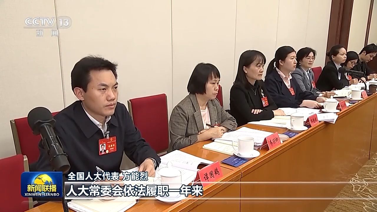 在審議全國人大常委會工作報告時,代表們認為,過去一年,十四屆全國人大常委會認真履行憲法法律賦予的職責,推動人大工作取得新進展新成效,為中國式現代化建設提供有力保障。