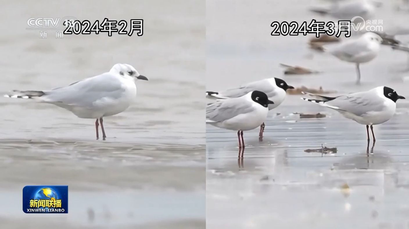 在江西鄱陽湖濕地,越冬候鳥遷徙進入高峰期,每天都有數(shù)萬只包括天鵝、灰雁、白鶴等候鳥北遷。工作人員通過AI識鳥系統(tǒng)可以密切關(guān)注候鳥數(shù)量、種群變化的數(shù)據(jù),幫助科研人員作出有效科學(xué)研判。福建閩江河口濕地是東亞至澳大利西亞候鳥遷徙路線上重要驛站。這是國家一級重點保護野生動物黑嘴鷗,這幾天,工作人員通過AI鳥類智能監(jiān)測模塊,觀測到黑嘴鷗從白色夏羽換成了黑色的繁殖羽,這也是它們北遷前最重要的一項準備工作。