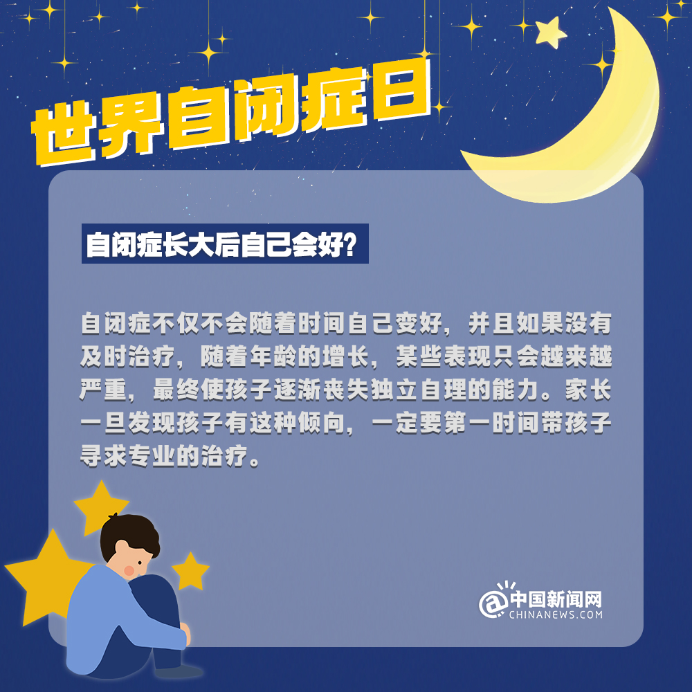中新網(wǎng)4月2日電 自閉癥兒童,也被稱為“來(lái)自星星的孩子”,他們的情緒難以捉摸,他們的思想難以表達(dá),他們像星星一樣孤獨(dú)地游離在宇宙中……有數(shù)據(jù)顯示:目前中國(guó)自閉癥患者已超1300萬(wàn)人。自閉癥有哪些認(rèn)知誤區(qū)?該如何早期識(shí)別自閉癥?詳情↓關(guān)愛(ài)自閉癥患者,讓星星的孩子有愛(ài)不孤單!