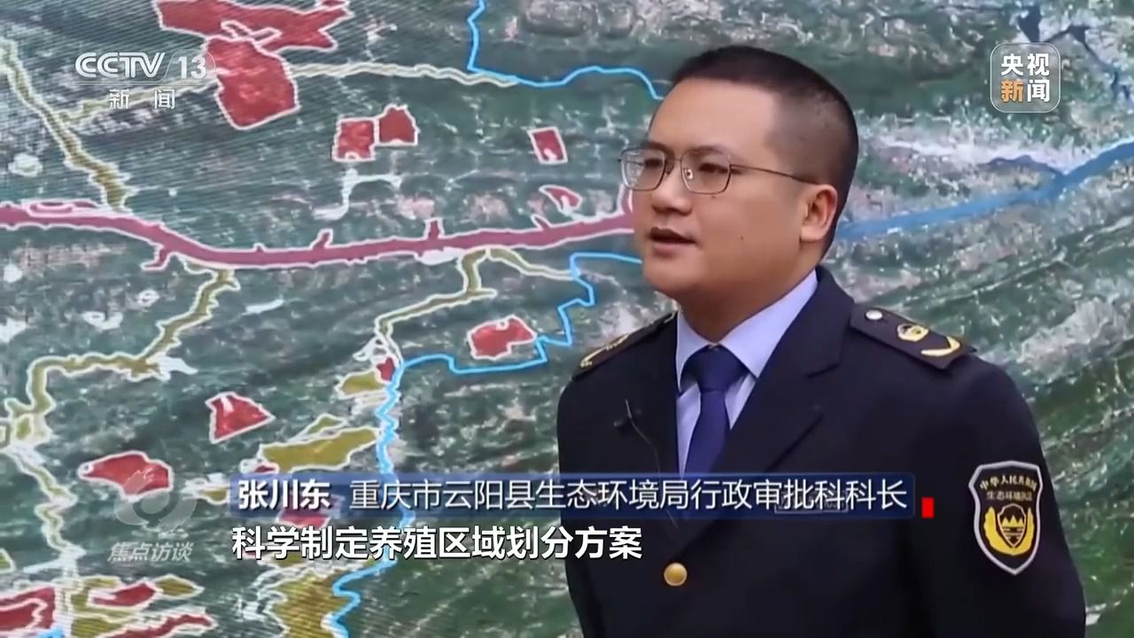 重慶市云陽縣生態(tài)環(huán)境局行政審批科科長 張川東:我們根據(jù)生態(tài)環(huán)境分區(qū)管控要求,科學制定養(yǎng)殖區(qū)域劃分方案,在靠近長江827.81平方公里劃定了禁養(yǎng)區(qū)和適養(yǎng)區(qū),在一塊將近2000平方公里的區(qū)域劃定了適養(yǎng)區(qū),嚴格把控“三高”企業(yè)準入,及時關(guān)閉、騰退不合理養(yǎng)殖企業(yè),倒逼現(xiàn)有的養(yǎng)殖大戶走上綠色高質(zhì)量發(fā)展之路。