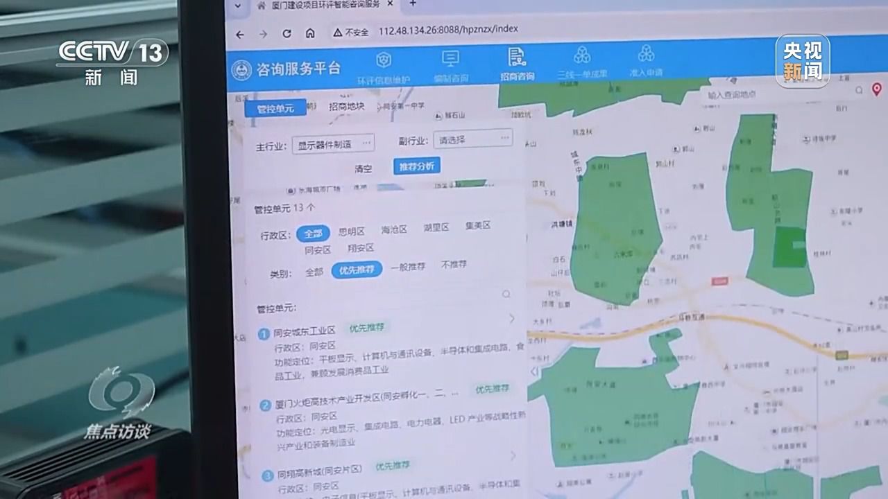 福建廈門市生態(tài)環(huán)境局環(huán)評處處長 詹源:我們在系統(tǒng)里面融入了國土空間、市政設(shè)施、產(chǎn)業(yè)布局以及生態(tài)環(huán)境,一共有207個矢量圖層,在這里面可以查看到空間信息、污水管網(wǎng)設(shè)置、產(chǎn)業(yè)布局規(guī)劃等信息。同時,我們還梳理了10萬多條準入條件,形成了分區(qū)管控的智慧內(nèi)核。