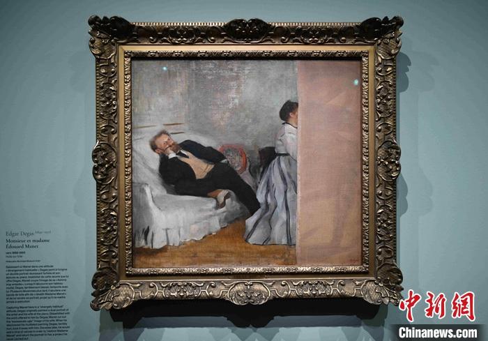圖為展覽中展出的德加所作油畫《馬奈夫婦》,該畫成為導致馬奈與德加關系瓦解的導火索。 中新社記者 李洋 攝