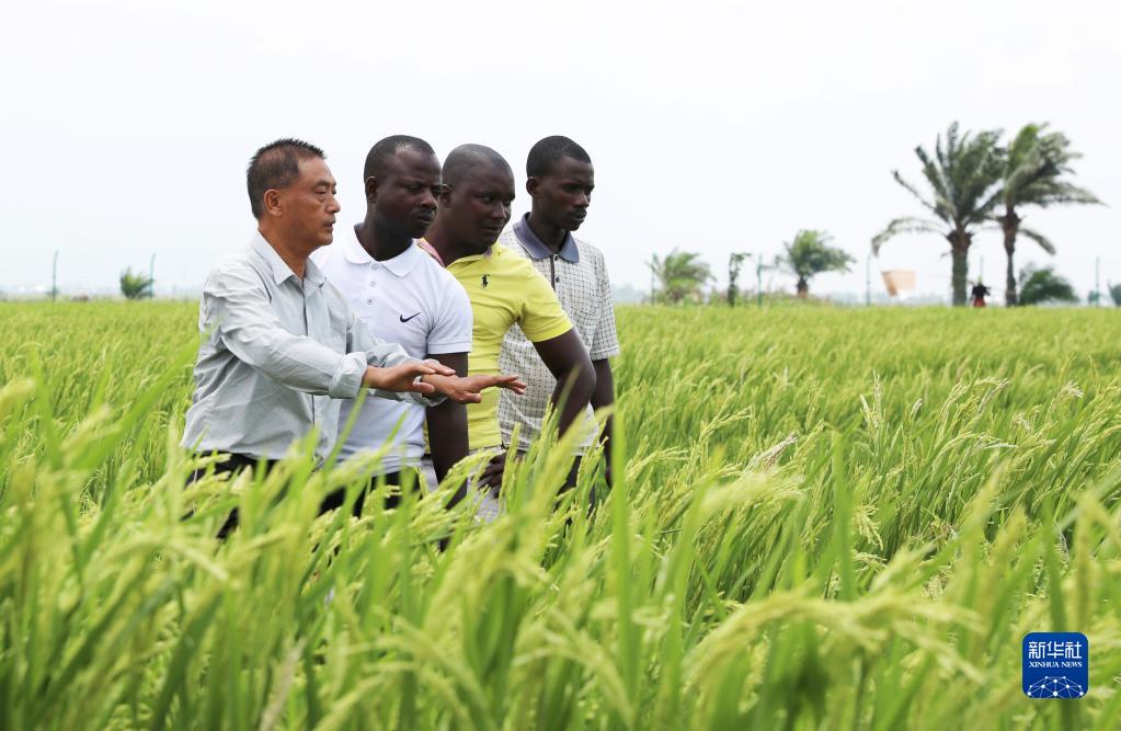 2022年10月29日,在布隆迪布班扎省基航加縣,中國(guó)水稻專(zhuān)家但松柏(左一)指導(dǎo)當(dāng)?shù)剞r(nóng)民種植水稻。新華社記者 董江輝 攝