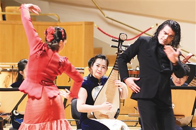 音樂會在一曲熱烈歡快的《春節(jié)序曲》中拉開序幕。兩國樂團合奏的新創(chuàng)曲目《陽光永遠照耀著我們的友誼》融合了中西音樂特色,令觀眾耳目一新;京劇《貴妃醉酒》向西班牙觀眾展現(xiàn)了中國傳統(tǒng)戲曲文化的獨特風(fēng)采;西班牙歌唱家用中文和西文演唱《我愛你中國》,以歌聲傳遞了兩國民眾間的友好情誼;中國樂器笙演奏的《西班牙斗牛曲》“混搭”西班牙“國粹”弗拉門戈舞蹈,更是令人擊節(jié)叫好。兩國藝術(shù)家以樂會友、以藝通心,通過中西音樂元素的碰撞與交融,展現(xiàn)了東西方文化的互融互鑒。
